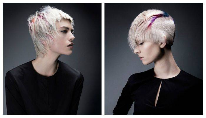 - креативную стрижку всегда можно дополнить трендовыми идеями окрашивания и укладкой, огромная вариативность которых не знает границ;