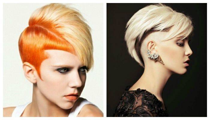 - Сочетание коротких локонов на макушке и височной области с длинной челкой и затылочной зоной.