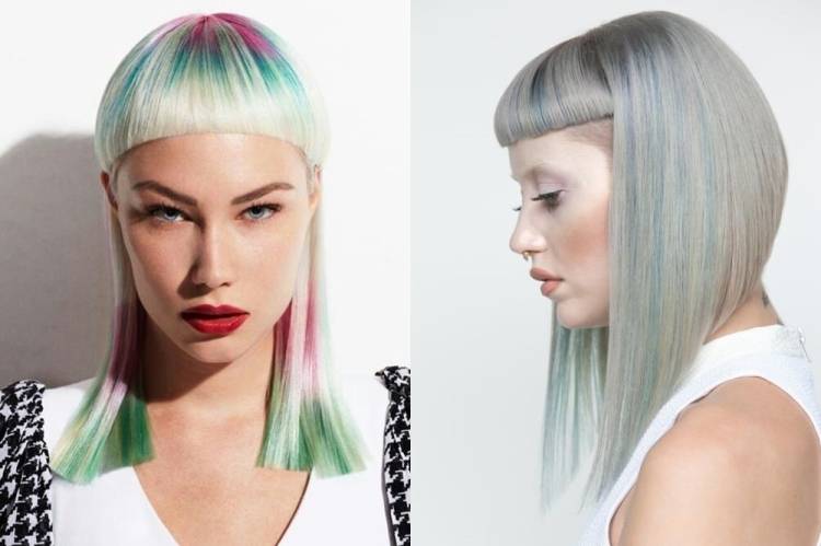 Креативные стрижки сами по себе выглядят очень ярко и запоминающееся. Но чтобы выглядеть ещё эффектнее, можно окрасить локоны в современных техниках. Например: