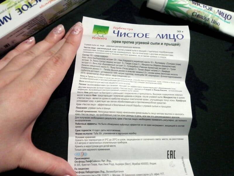 - Крем «Чистое лицо» – продукт, который предполагает проведение курса процедур. То есть не рекомендуется использовать его постоянно. При этом у курса нет определенной продолжительности: средство применяется дважды в день (утром и вечером) до полного заживления кожи. При этом после окончания лечения можно наносить продукт точечно, если есть такая необходимость.