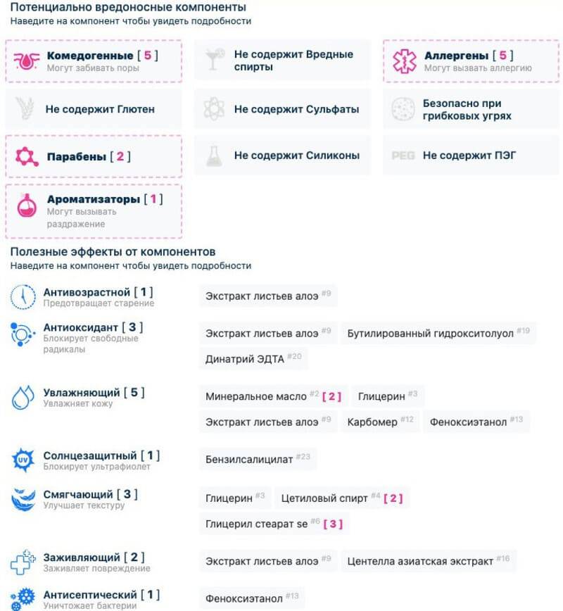 И все бы ничего, если бы в этой бочке мёда не было ложки дёгтя — пяти потенциально опасных и аллергенных компонентов, в том числе парабенов, которые, в данном случае, выступают консервантами.