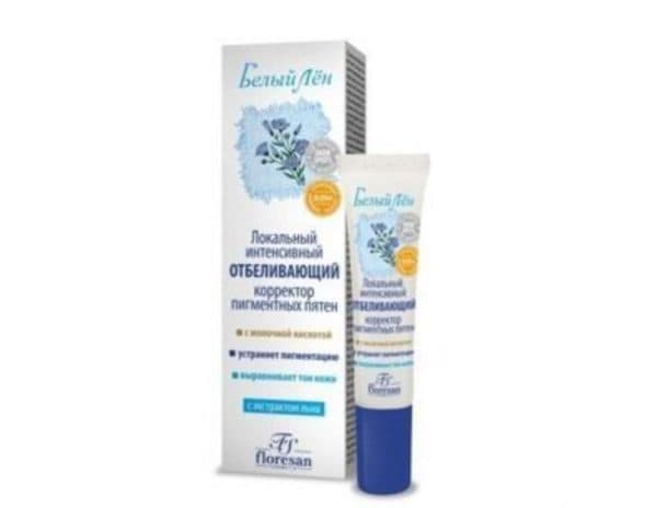 - молочная кислота (действует как лёгкий пилинг, отшелушивая поверхностные наиболее пигментированные частички эпидермиса);