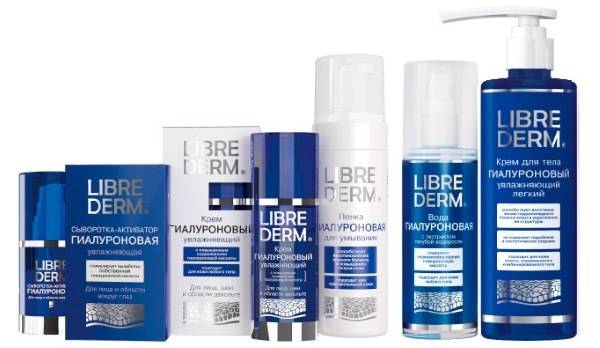 - широко рекламирующийся крем Librederm был оценен пользователями с положительной стороны и это странно, так как в его составе присутствует ГК, но в какой форме не совсем понятно, а также она указана одной из последних в списке компонентов. Кроме того, в этом креме присутствуют минеральное масло и изопропил-миристат — известные комедогены;
