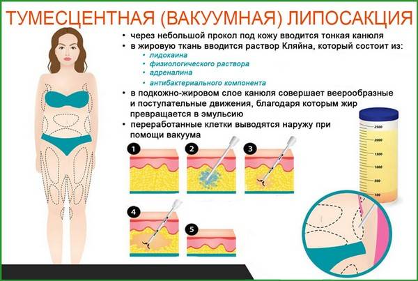 Перед выполнением данного метода в жировую ткань вводится специальная жидкость Кляйна (она же – липолитическая суспензия). Это вещество помогает жиру расщепляться и превращаться в особую жидкую эмульсию, которую затем выводят из организма.