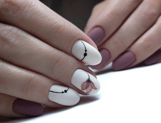 Осенью и зимой особую актуальность приобретает маникюр с бархатистым матовым финишем, который добавляет образу мягкости и уюта. Можно делать матовым однотонный маникюр или, например, рисовать матовым лаком на глянцевом покрытии, играя на контрасте текстур.