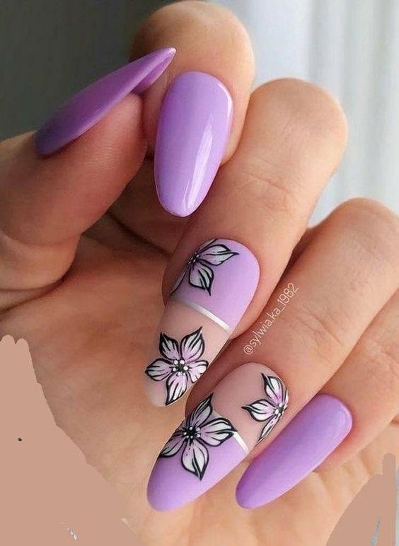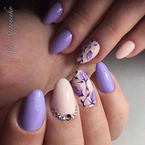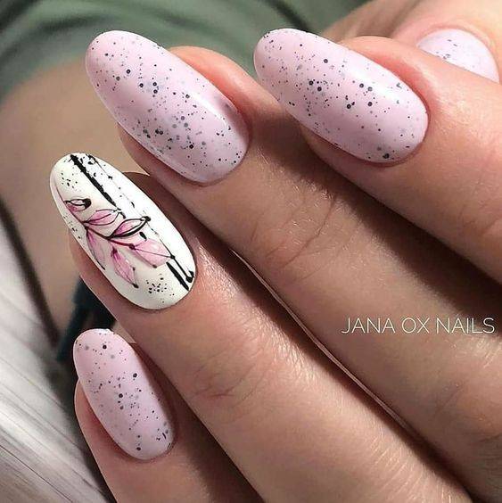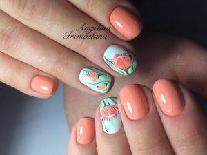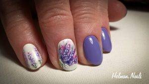 Флористический дизайн — иллюстрации листьев и цветом на ноготках. Дизайн требует достаточного количества места, поэтому редко используется на коротких ногтях.