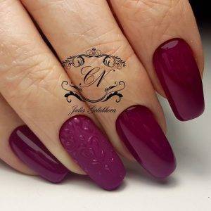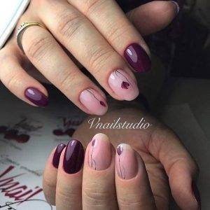 Остальные ногти можно покрыть классическими цветами: бордовым, розовым или бежевым.