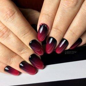 Обмре всецело завоевало сердца поклонниц маникюра. Nail мастера предлагают своим клиентам различные варианты от ярких контрастных решений до мягких, едав уловимых переходов цветового акцента, от горизонтальных направлений цветового возрастания, до вертикальных переборов оттенков. От полного охвата всех ногтей, до акцента на одном пальчике с едва уловимыми цветовыми разводами. В любом случае, омбре – решение которое сделает любые ноготки эффектными и оживит даже такую, казалось бы, спокойную форму как «овал».