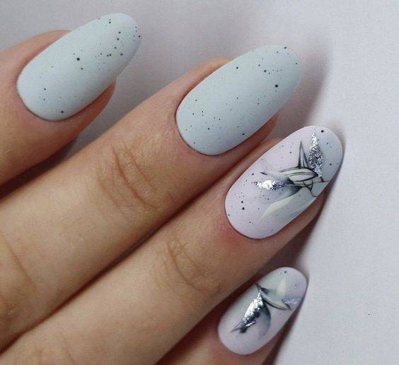 - брызги или «перепелиное яйцо». В 2020 году в тренде были пятна леопарда. В сезоне 2021-2022 г.г. ультра модными считаются маникюр на короткие ногти овальной формы в расцветке перепелиных яиц.