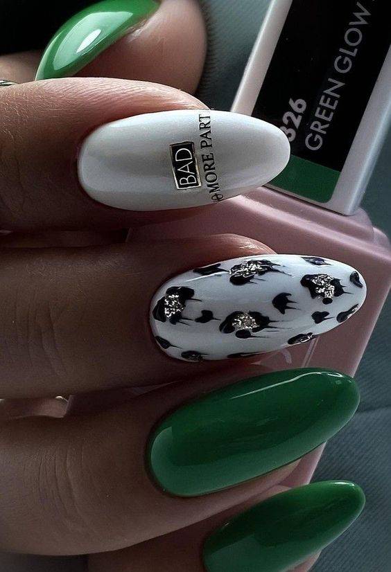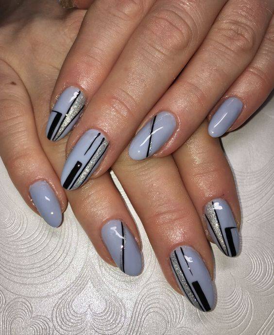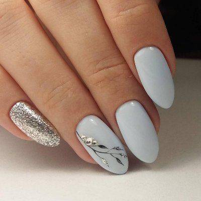 Блестки и глиттер – довольно популярное решение. Главное – не переборщить. Если выбрали глиттер, то блестки лучше не брать. А можно остановиться на варианте легкой россыпи блеска и акценте в виде контрастного рисунка на одном из ноготков.