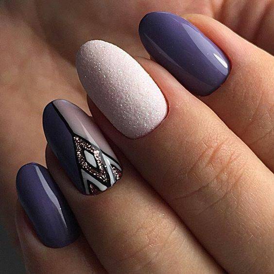 Всегда в тренде, за счет своей универсальности. Дизайн ногтей округлой формы может быть любым. Очень часто для оформления используются лаки с глянцевым и матовым эффектом. Комбинируя их можно получить красивый результат. Также для дизайна применяют блестки мелкого помола, акриловую пудру, бархатный песок.