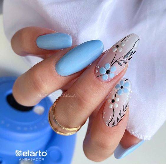 Итак, в тренде всевозможные цветы и веточки, которые невероятно нежно смотрятся на овальных ногтевых пластинах, хаотично расположенные полоски и графические изображения, геометрические композиции, оформленные в стиле «колор блок» и ажурные завитки.