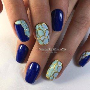 Прохладный бирюзовый и синий с золотистыми бликами дополняют практически любой оттенок кожи. Вам захочется заказать поездку на море каждый раз, когда вы смотрите на свой маникюр.