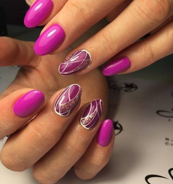 Длина ногтей для маникюра играет решающую роль. Ногтевая пластина средней длинны уже позволяет добавить в дизайн рисунок. Итак, особенно популярными в этом сезоне являются следующие.