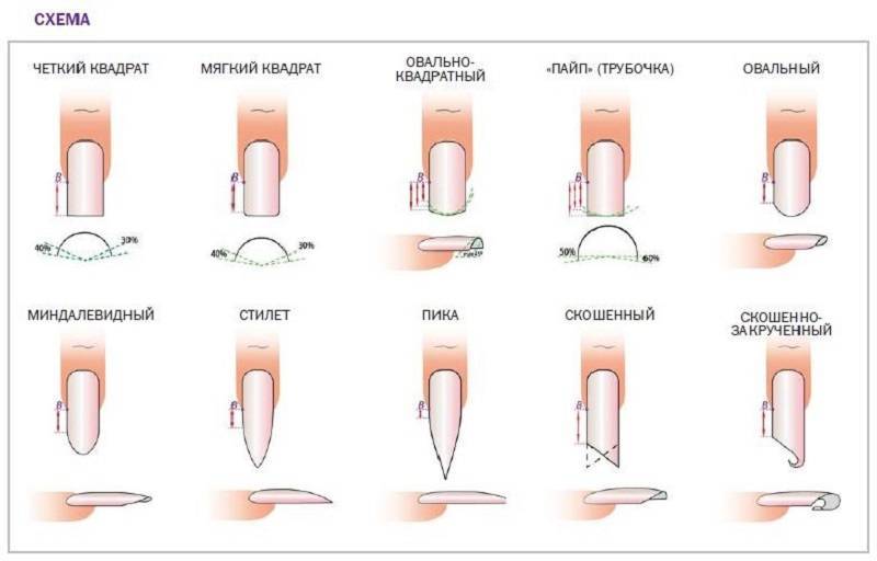 Как вы можете рассмотреть на схеме, формы ногтей могут быть разными, но не все из них практичны в повседневной жизни.