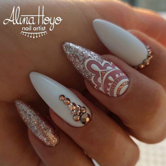 - Редкая красавица откажется украсить ноготки лаконичной геометрией или интересным узором под повседневный лук. И, несомненно, роскошная роспись на ноготках, дополненная блестящим декором, является лучшим выбором для особых случаев.