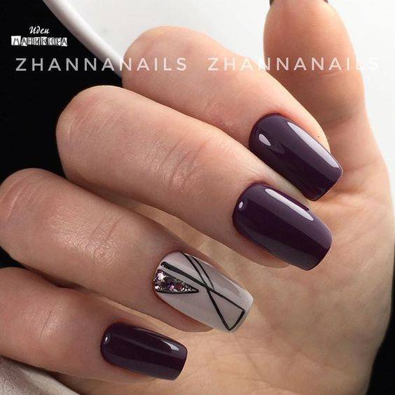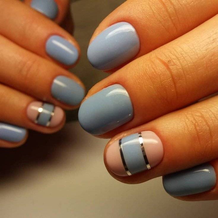 Геометрические фигуры особенно хорошо подходят в том случае, если у вас широкие ногти. Выделяйте середину ногтя более темной полоской, а края оставляйте светлыми или вовсе не прокрашенными.