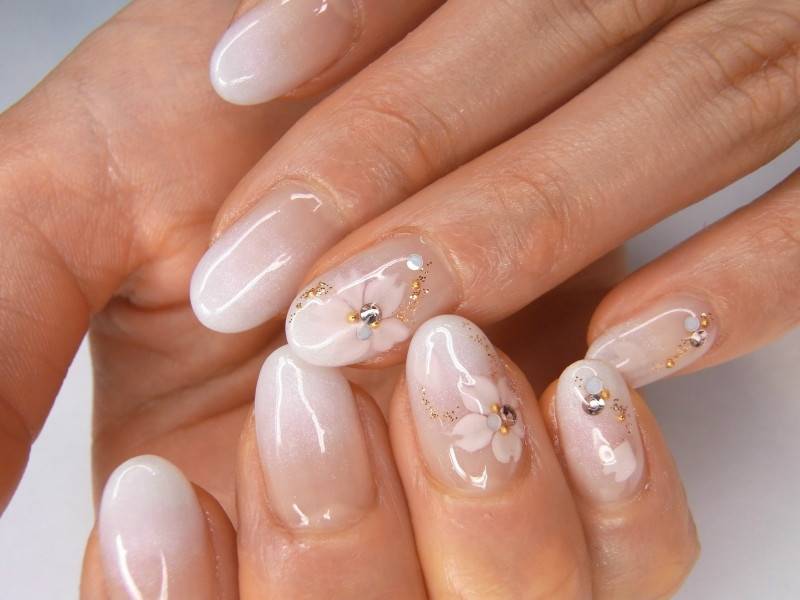 Следите за толщиной материала. Короткие круглые ногти, если их покрыть толстым слоем базы, потом цветника и топа, будут напоминать плюшки