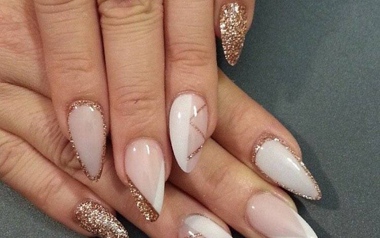 Великолепные слегка заостренные ноготки будут уместны в качестве дополнения стильного вечернего образа, епатажного лука для вечеринки, свидания, фотосессии и т.д.