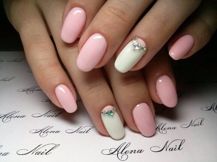 Дизайн со стразами. Блестящие камушки – излюбленное женщинами украшение для ногтей. Они одинаково подходят для пластинок всякой длины. Замечено, что на круглых ногтях стразы выглядят очень празднично и мило, но не слишком вычурно и вызывающе.