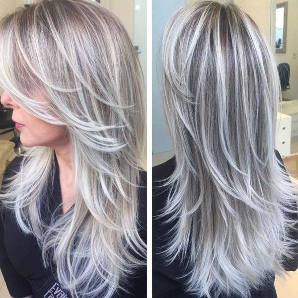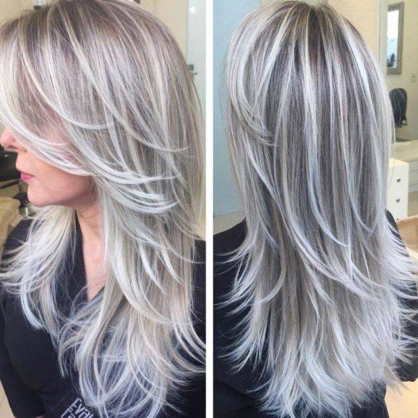 Специалисты рекомендуют в этом случае обратить внимание на следующие виды мелирования седых волос: шатуш, колорирование, «соль и перец»