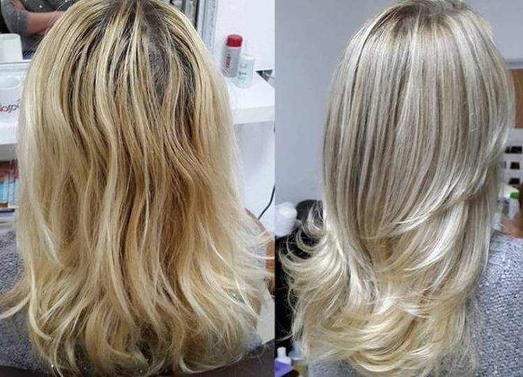 Оно проводится с целью придать светлые цвета выделенным прядям или скрыть желтизну. Если вы уже ранее проводили густое флэш-окрашивание, при повторной процедуре рекомендуем добавить несколько новых оттенков.