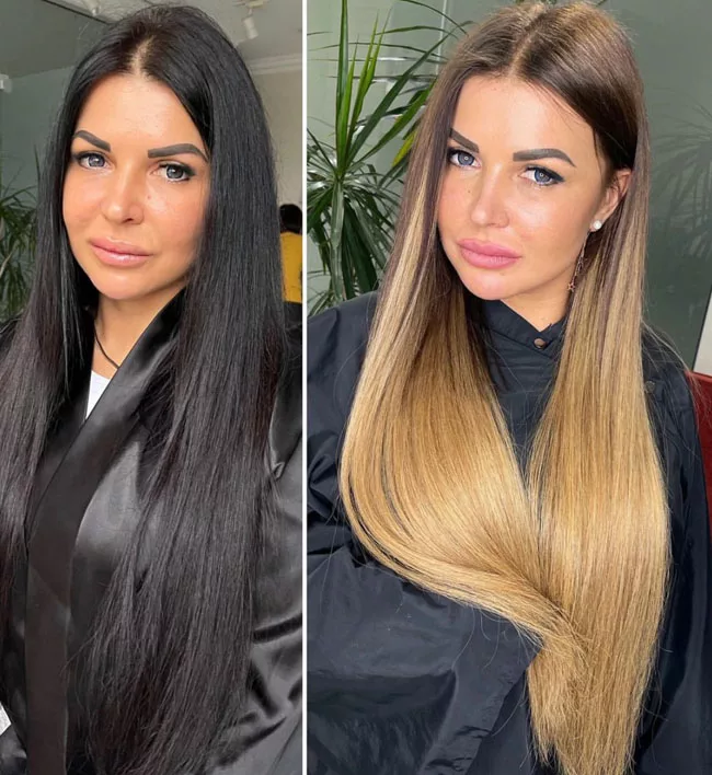 - Обратное мелирование может дать волосам более натуральный и глубокий оттенок.