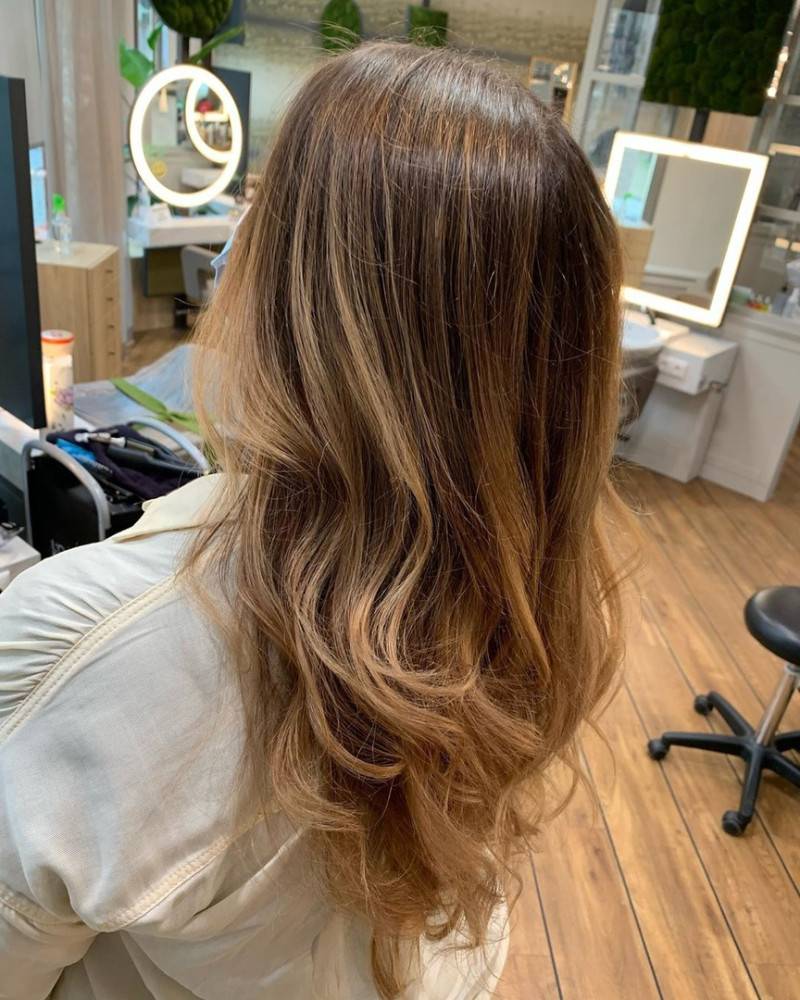 Основной упор делается не на технику выполнения, а на выбор правильных оттенков и их гармоничное сочетание. Результат должен получиться темнее основного цвета у корней в паре с чуть более светлыми тёплыми нюансами ближе к кончикам, а также усиленным блеском по всей длине.