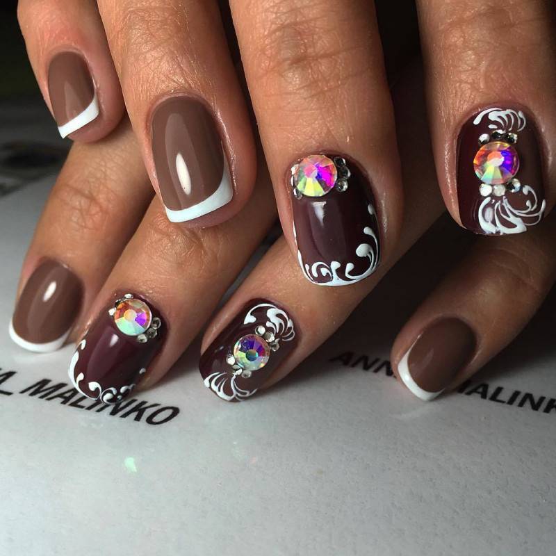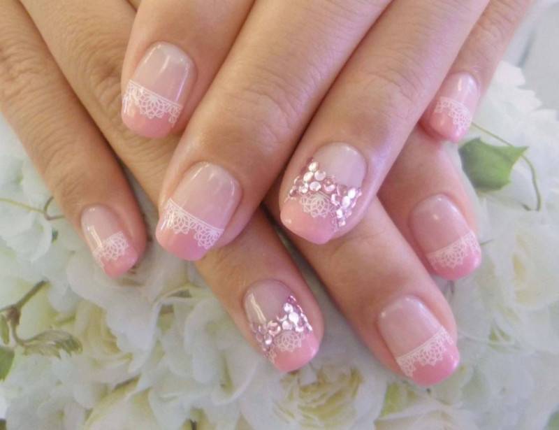 Вуаля! Маникюр готов! Стразы, бусинки или бантики наносим в самом конце. Конечно же, это наиболее простой способ получить желаемый кружева.