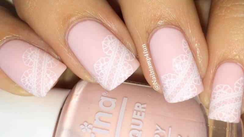 Выполнить модный маникюр с кружевом 2021-2022 года специалисты маникюрного дела предлагают с помощью таких техник, как роспись и рисование ажурных узоров, стемпинг и с помощью клеящегося кружева.
