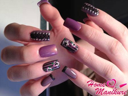 Для украшения коротких ногтей элементы должны быть более мелкими, чем для длинных, так они будут выглядеть более гармонично. Нарядно, но не вычурно, смотрится маникюр с черным кружевом, например французский или лунный. Кружевом могут быть украшены не все ногти, а только несколько избранных. Причем вы можете нанести на каждый ноготь свой узор, это тоже будет выглядеть интересно и оригинально. Это те варианты нейл-арта, которые всегда хорошо будут смотреться, если вы предпочитаете короткие ногти.
