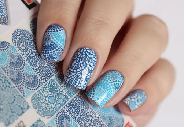Наклейки — это простая техника нейл-арта, доступная каждой моднице. Использование стикеров знакомо каждой девушке, ведь с их помощью можно создавать самые необычные образы. Для этой техники вам понадобится немного чистой воды, тонкая кисть для разглаживания и кружевные трафареты.