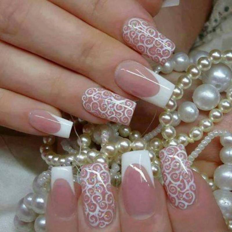 Для торжественного случая белый ажурный френч можно дополнить миниатюрной акриловой лепкой или стразами, соблюдая, конечно же, чувство меры.