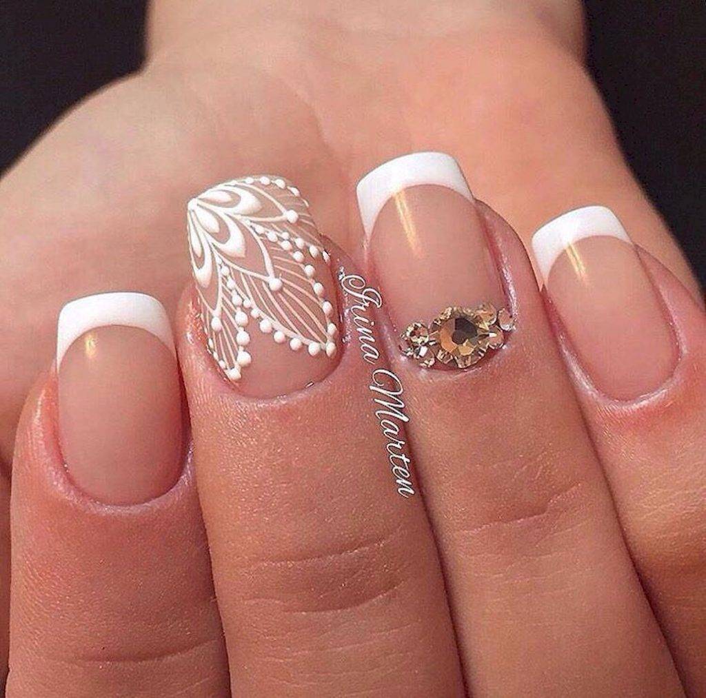 Для торжественного случая белый ажурный френч можно дополнить миниатюрной акриловой лепкой или стразами, соблюдая, конечно же, чувство меры.