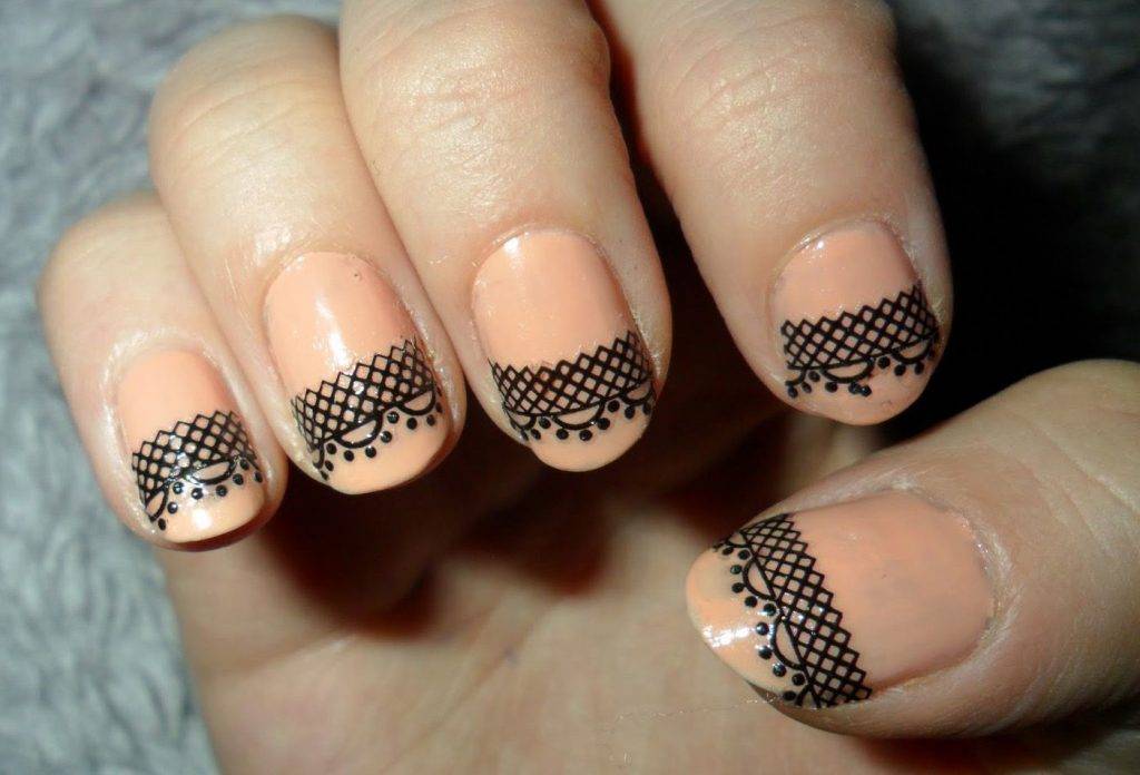 Для украшения коротких ногтей элементы должны быть более мелкими, чем для длинных, так они будут выглядеть более гармонично. Нарядно, но не вычурно, смотрится маникюр с черным кружевом, например французский или лунный. Кружевом могут быть украшены не все ногти, а только несколько избранных. Причем вы можете нанести на каждый ноготь свой узор, это тоже будет выглядеть интересно и оригинально. Это те варианты нейл-арта, которые всегда хорошо будут смотреться, если вы предпочитаете короткие ногти.