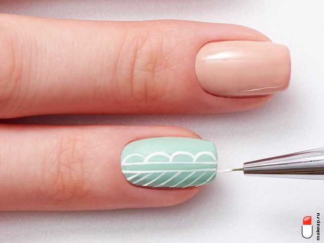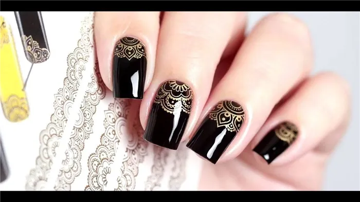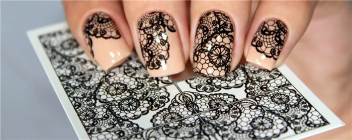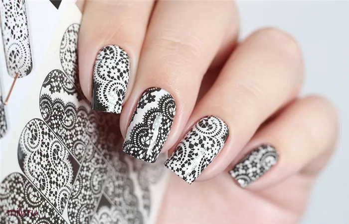 Это самый простой и быстрый и метод создания кружевного маникюра. Выполнить его можно 2 вариантами: