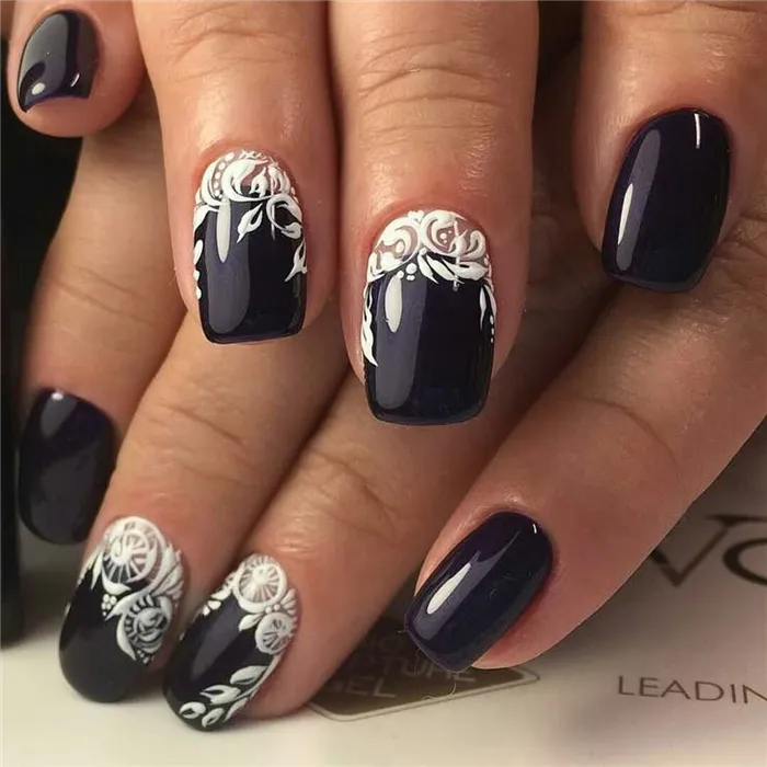 Восхитительный кружевной маникюр отлично выглядит на коротких ноготках. А если вы любите длинные ногти, маникюр с кружевом будет еще более уместным, ведь на длинной ногтевой пластине можно нарисовать очень красивые и оригинальные кружевные узоры, воссоздав потрясающий эффект трепетного материала на ногтях.