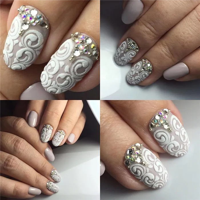 Причем кружевной маникюр более спокойно будет смотреться на милых коротких ноготках, и весьма эффектно на средних и длинных.