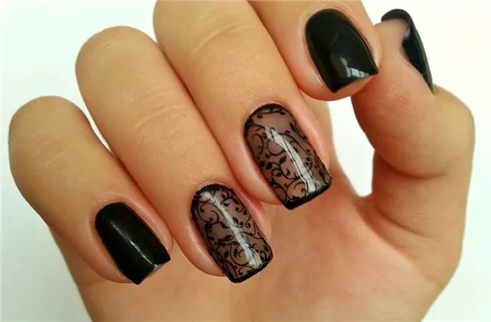 Здесь преимуществом является тот факт, что не столь важно будет ли кружево закрывать всю ногтевую пластину целиком или нет. Огромную роль играет то, насколько симметричным будет сам узор. Поэтому стоит внимательно выбирать сетку-кружево для дизайна