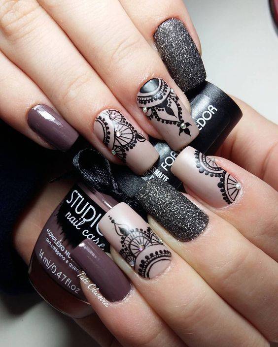 Если у вас есть опыт – можно сделать такой маникюр самому, не посещая мастера. Чтобы оформление выглядело красиво, необходимо четко и уверенно проводить линии, в точности повторяя желаемые рисунки. Без усидчивости тут не обойтись.