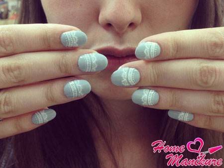 Кружева можно нарисовать вручную, воспользоваться наклейками, стемпингом или даже настоящим кружевом. В цветовом оформлении — никаких ограничений. Для того, чтобы создать идеальный маникюр, необязательно идти к профессионалам, так как эта процедура подвластна всем женщинам.