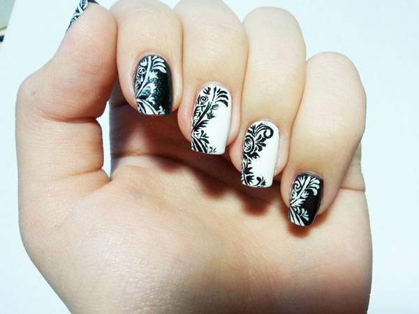 Это самый простой и быстрый и метод создания кружевного маникюра. Выполнить его можно 2 вариантами: