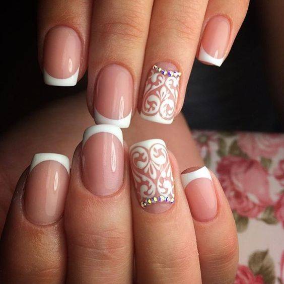 К примеру, французский маникюр – это классика, которая всегда будет актуальной. Она отлично смотрится в любом цветовом решении. Кроме того, хорошо сочетается с ажурным дизайном. Такой маникюр смотрится очень нежно, женственно и в то же время празднично. Поэтому кружевной френч уже давно стал фаворитом многих невест.