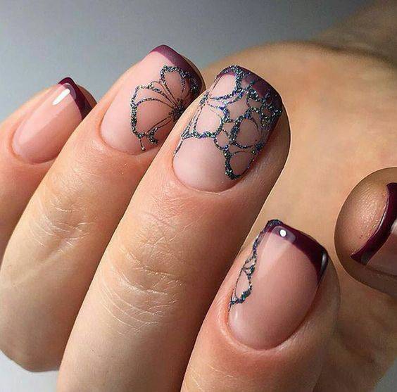- Ажур на французском маникюре смотрится невероятно изысканно и аристократично. Такой дизайн подходит как для повседневного ношения, так и для выхода в свет (особенно если добавить к нему украшения блестками, стразами, камушками).