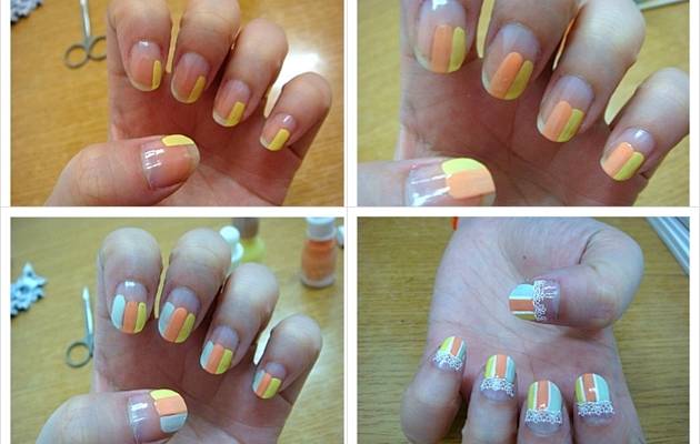 Этот простой способ позволяет варьировать расположение кружева на ногтевой пластине и тем самым сделать дизайн разнообразным и оригинальным.