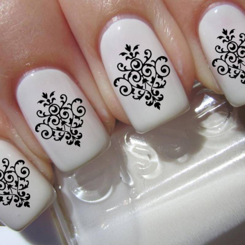 В продаже появились наклейки с кружевными рисунками. Плоские пленки с рисунками очень легки в использовании. Просто снимите защитный шар, аккуратно приложите наклейки к ногтю, подровняйте края по размеру ваших ногтей и покройте все закрепителем.