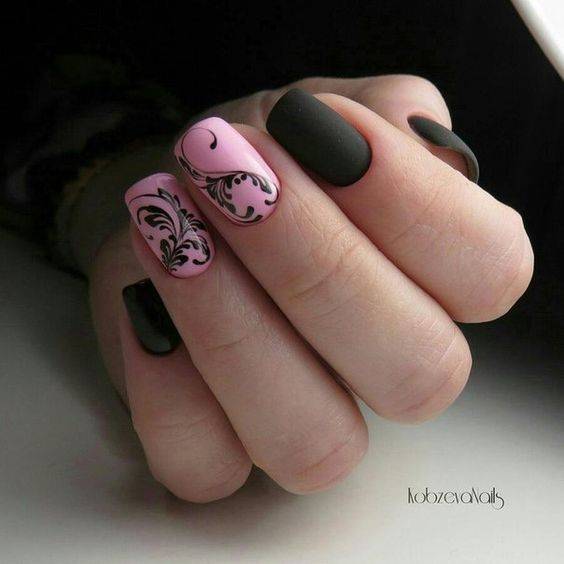 Сам по себе кружевной рисунок смотрится очень нежно. Но в зависимости от оттенка можно задать разный характер дизайну. Также многое зависит от того, будет такой рисунок на каждом ноготке или только в качестве акцента. Довольно часто кружевом дополняют однотонное покрытие или же конкретный стиль дизайна.
