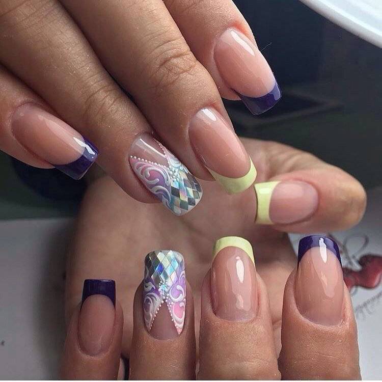 Можно выбрать любой цвет, узор, орнаменты с блестками и наборы для французского маникюра.