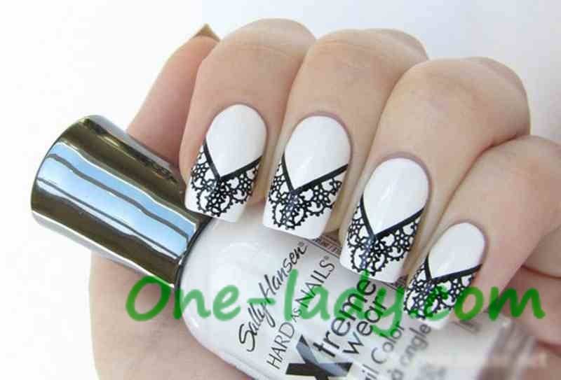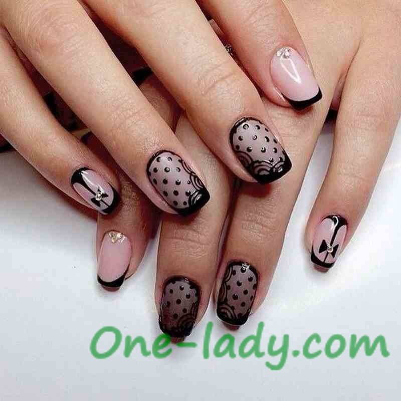 Это самый распространённый вариант. Основа, то есть лак может быть любого цвета на ваш вкус, как и кружева, которые используются для дизайна.