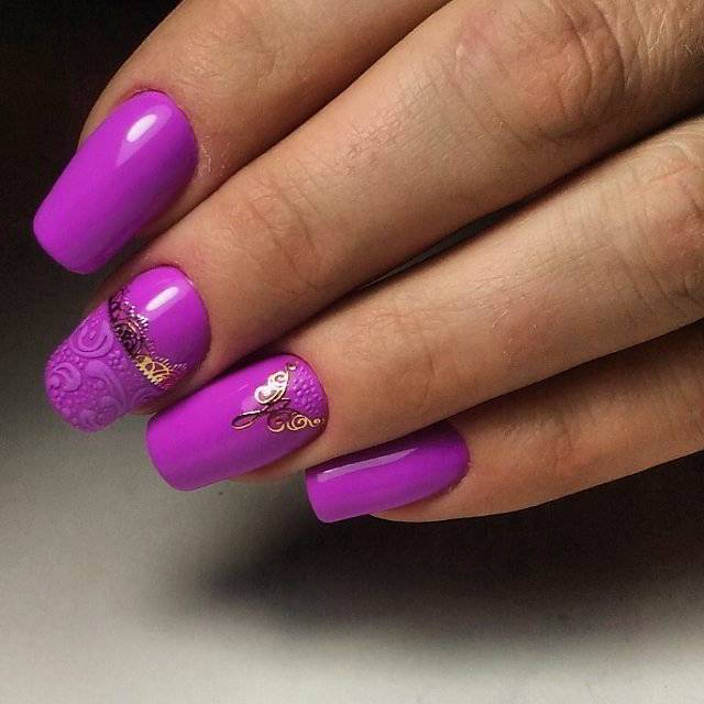Яркий маникюр. Нейл-арт может стать яркой деталью образа, если использовать насыщенные, глубокие цвета. Используйте в качестве основного оттенка салатовый, морковный, цвет фуксии, алый или ультрамариновый. Не бойтесь таких цветов, при правильном сочетании они подчеркнут вашу индивидуальность.